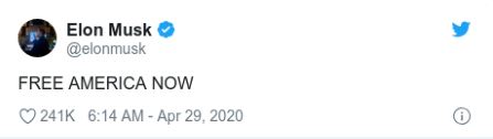 The latest celebrity to campaign for a lift in lockdown restrictions is Tesla founder, Elon Musk, who posted a series of tweets on Twitter, ranting he thought ‘the Coronavirus pandemic is dumb’ and to ‘FREE AMERICA NOW!’ – the latter is now pinned to his Twitter profile.