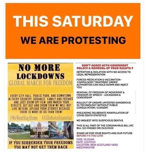 The poster is stating there will be a demonstration in Workington, however the police is saying to carry on following the rules of lockdown.