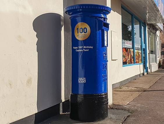 The Royal Mail have issued a special postmark and have placed a NHS blue postbox in Marlston Moretaine, Bedfordshire near Captain Moore’s home.