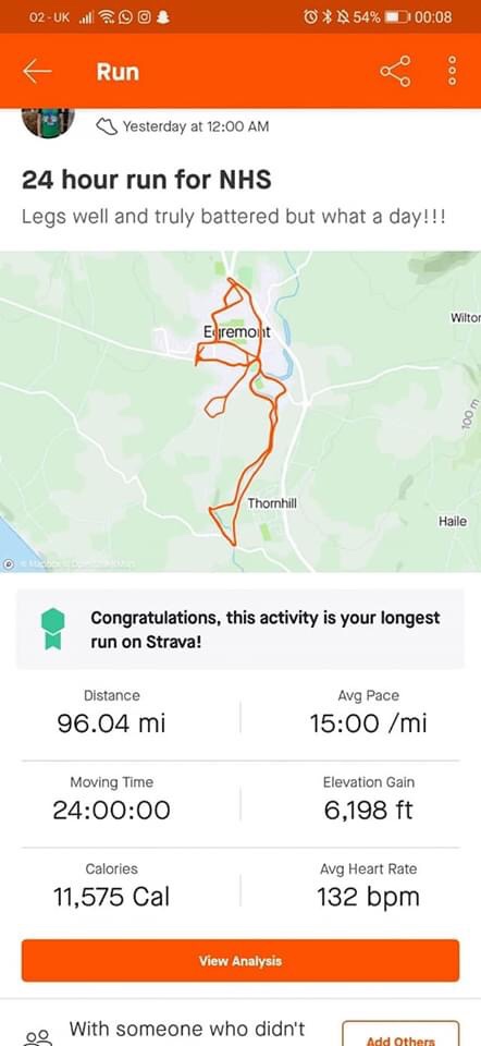 Many people have run marathons to raise money for charity, but one Cumbrian man decided to go a bit further – he’s run for 24 consecutive hours, completing over 96 miles.