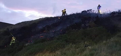 Firefighters spent nearly four hours tackling the wildfire and damping down to prevent flare-ups. The fire, which caused damage to approximately 250 square metres of grass and gorse, spread to the fringes of the golf course on Walney Island.