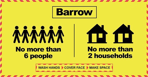 In Barrow the advice that groups of six should be limited to people from no more than two households remains in place and will be reviewed next week.