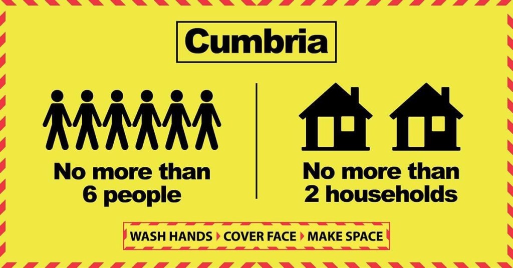 In addition, from today people living in Cumbria are being strongly advised that groups of six should include people from no more than TWO households.