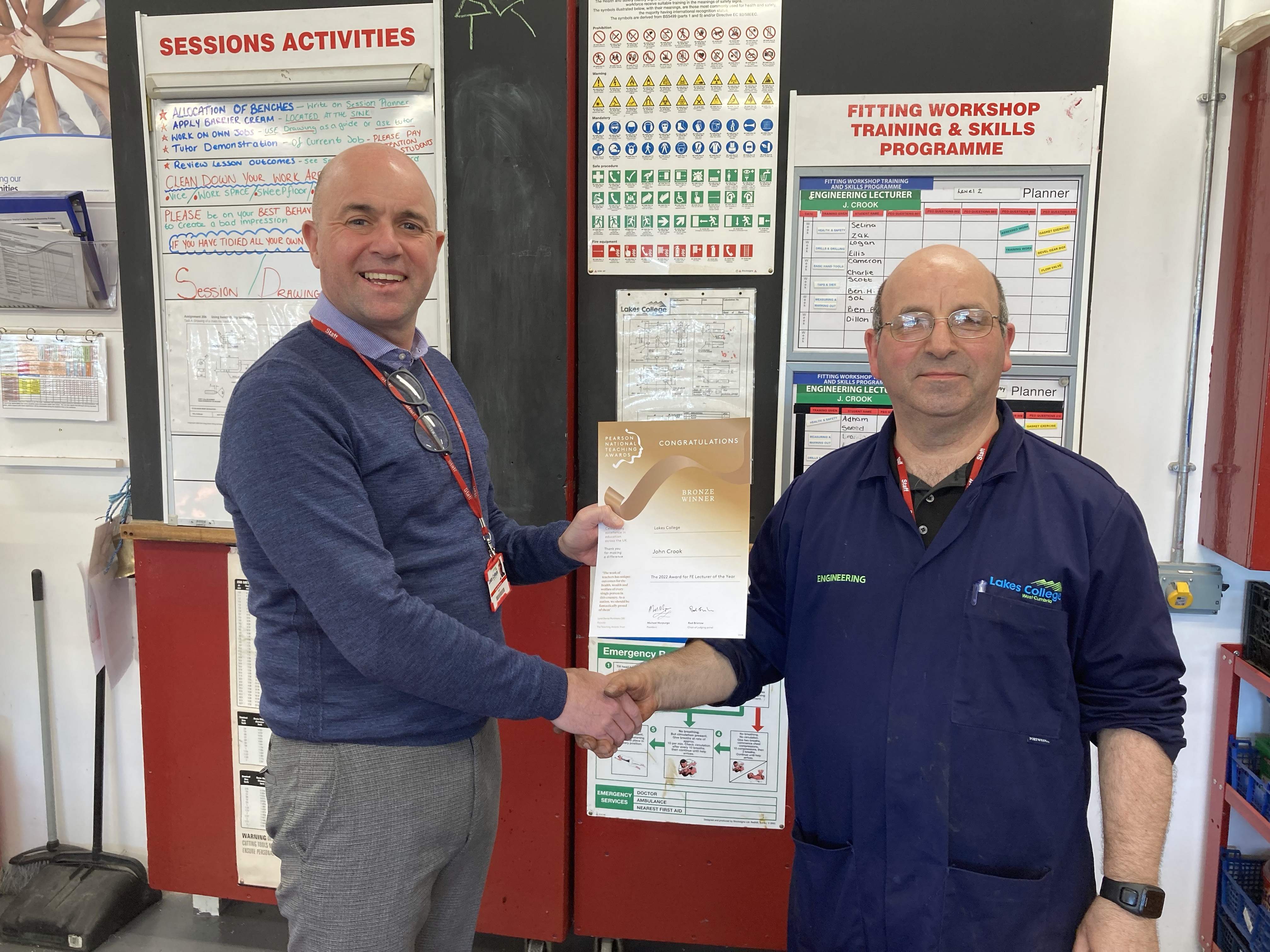 John Crook, who teaches engineering at Lakes College, has been awarded a Bronze Pearson National Teaching Award for Further Education Lecturer of the Year.