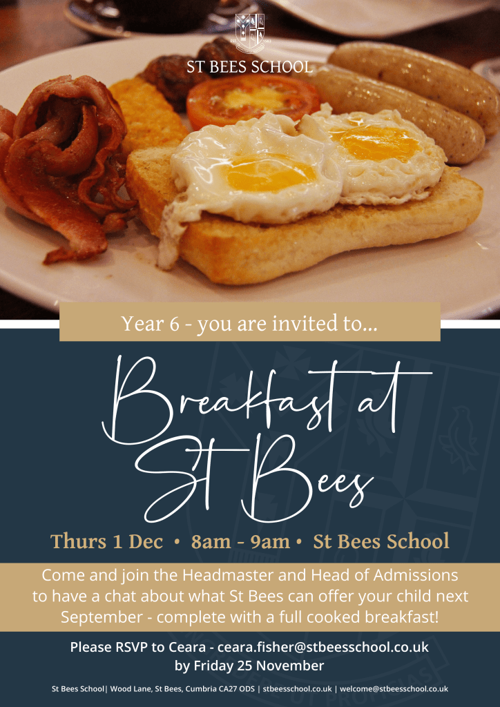 The independent secondary school has planned this mouth-watering event, on Thursday December 1, to show the local parent and student community what St Bees School can offer as a secondary school, all while enjoying a delicious full cooked breakfast.