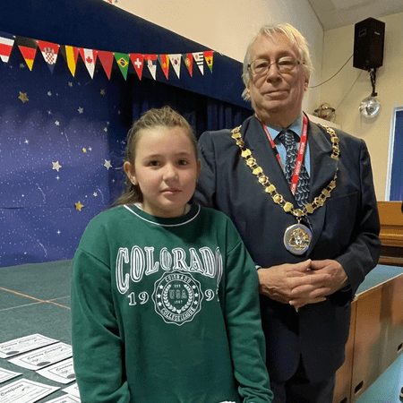 The mayor attended the morning assembly at Beckstone Primary School to award Jesse with her prize and hand out goodie bags to the runners up of this year’s competition.