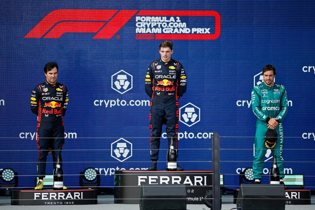 The team battle at Red Bull just heated up as Max Verstappen came from ninth to win the Miami Grand Prix as all twenty cars finish the race.