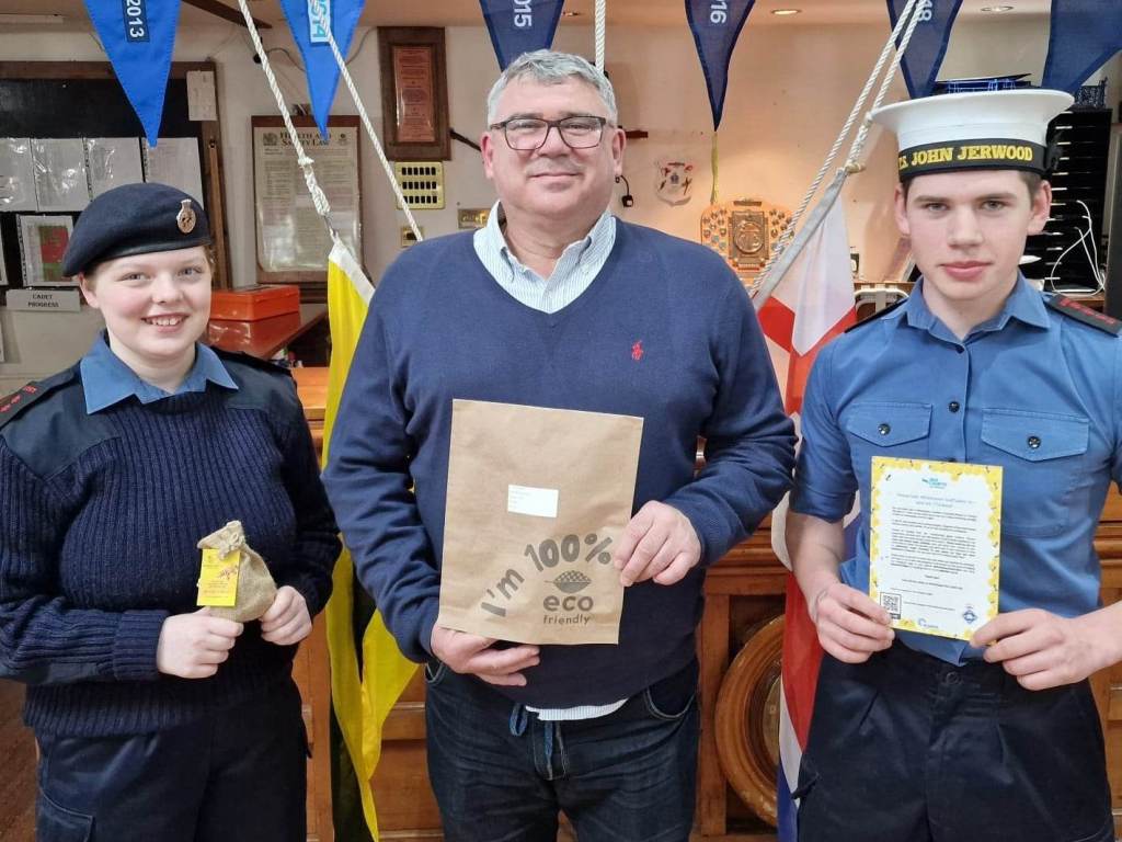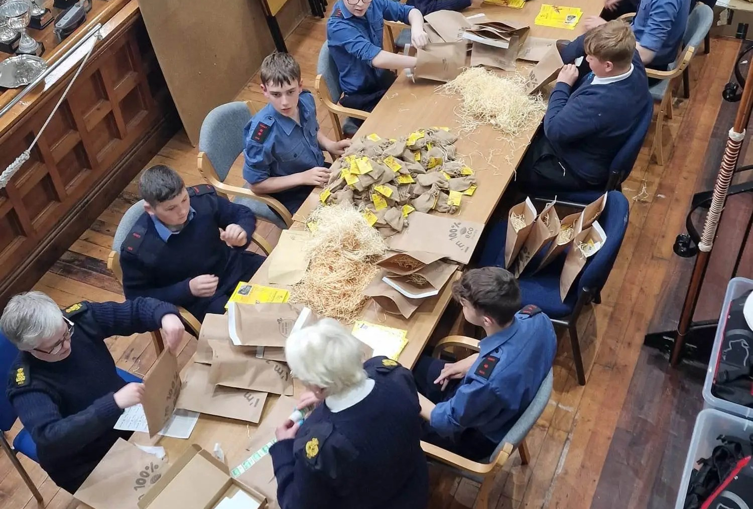 Whitehaven Town Councillor Edwin Dinsdale visited the unit while the cadets were preparing the seed ball packs and were presented with his very own.