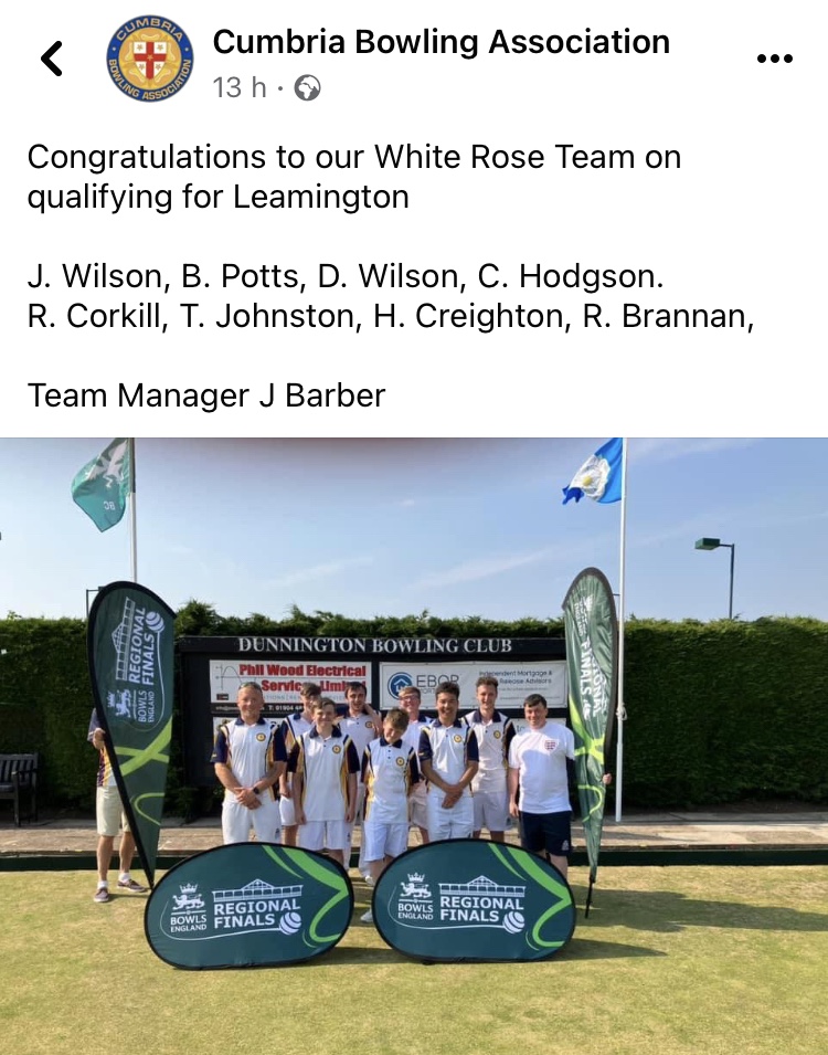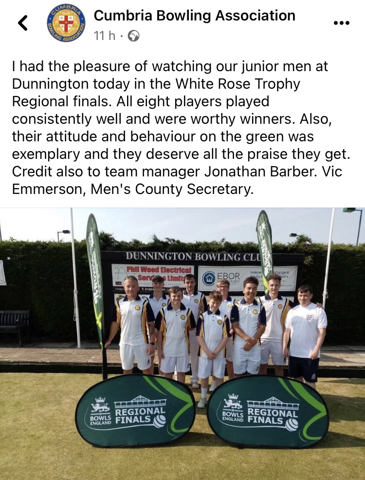 Cumbria already have a team heading to Royal Leamington Spa for the National Finals as the under 25’s win the North Region of the White Rose Trophy.