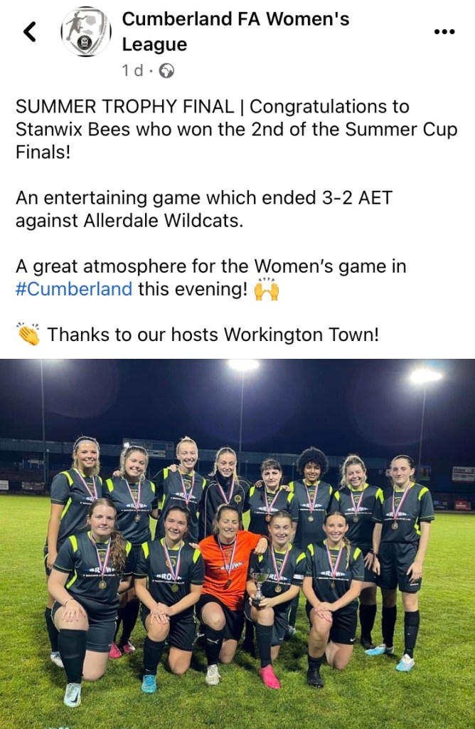 The second of the Andrea Buggy Women’s Summer finals between Stanwix Bees and Allerdale Wildcats ended with victory for Stanwix after extra time.