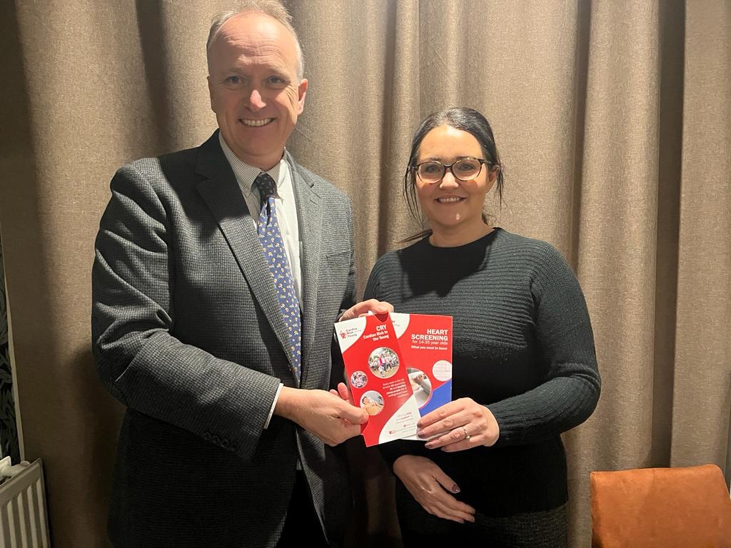 Dr Neil Hudson MP met with Donna Mills of Cardiac Risk in the Young for Eden or CRY for EDEN who has raised thousands of pounds for a heart screening weekend in Penrith.