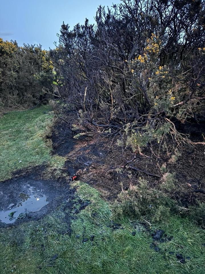 On our arrival they found a camp fire had spread to a large area of grass and gorse.