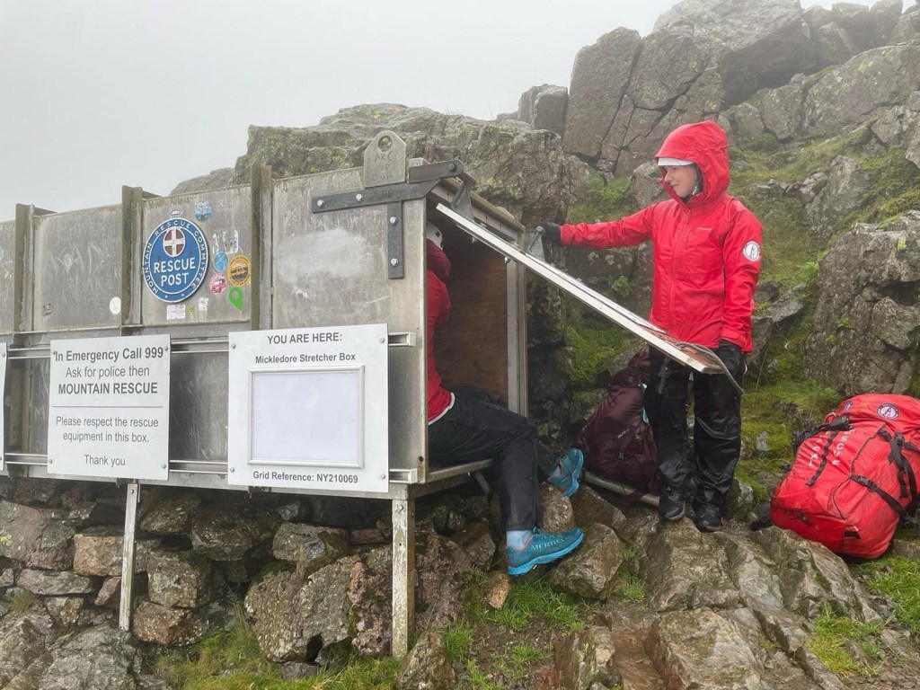 Wasdale Team Leader was able to confirm her location by Phonefind and then guide her towards the stretcher box at Mickledore.