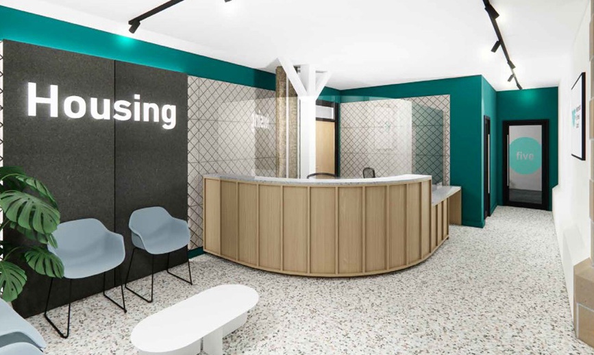 - Interview pods removed and the space opened up to introduce a second reception and waiting area for housing with a mixture of hard and soft furniture.