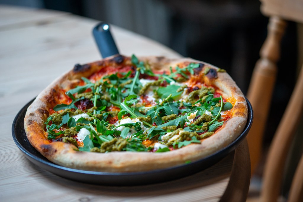 A short walk from Kendal Bus Station, Marra homemade sourdough pizzas in a beautiful exposed beam building. Cute courtyard too.