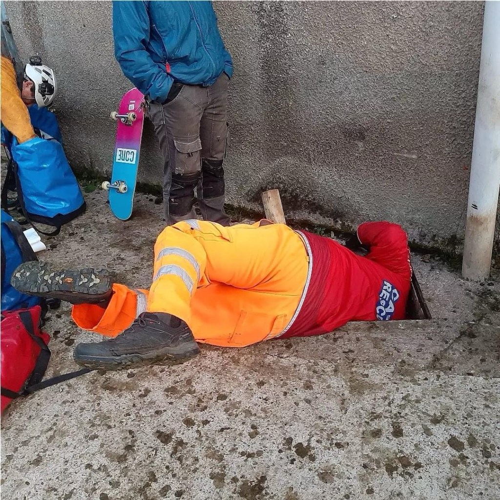Since the access was very tight, and there was the potential for accumulation of gases, Cumbria Ore Mines Rescue Unit were called to assist.