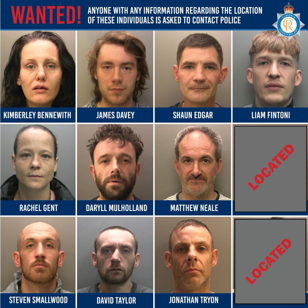 Detective Inspector David Howard, Cumbria Constabulary, said: “We would like the public’s help in locating the twelve individuals we are appealing for.