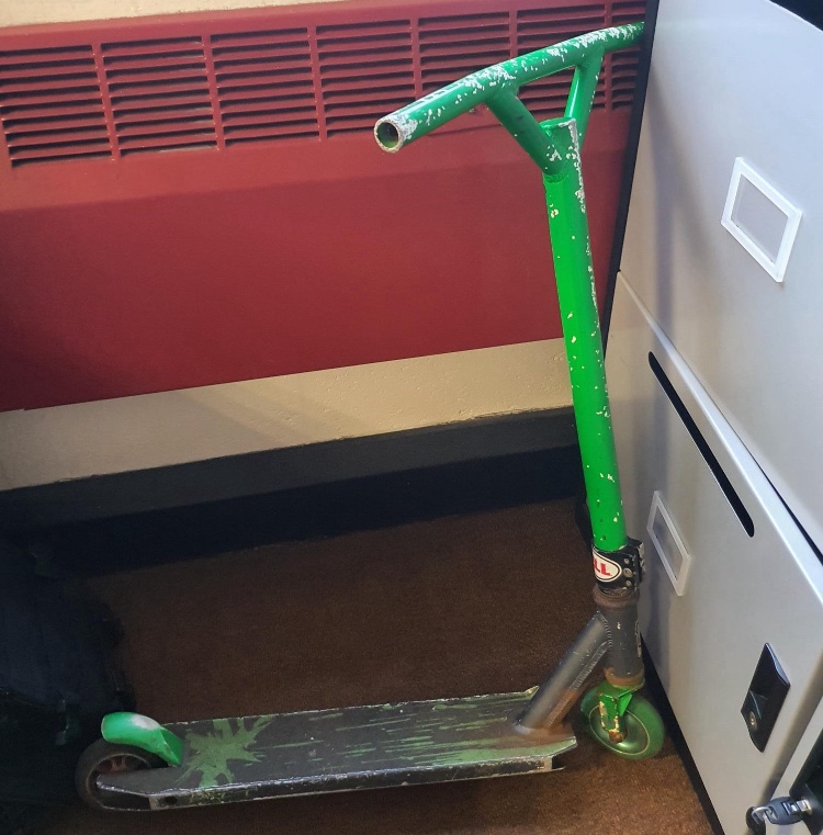 A scooter was found inside the building and police have stated the owner is “not in trouble”, they just want it returned.