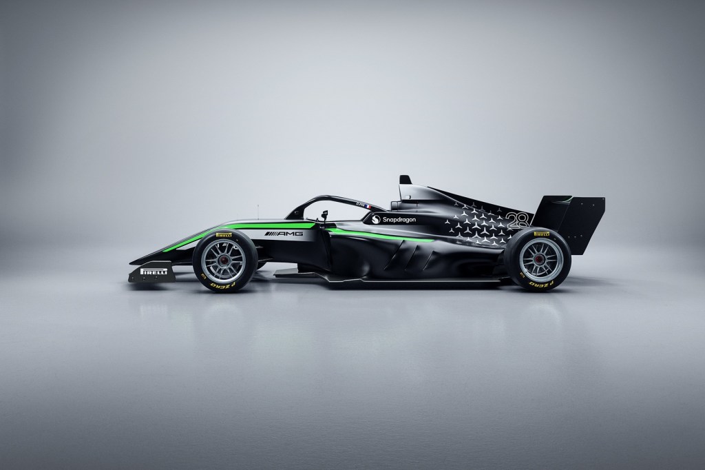 Added to this is the team’s volt green, demarking Pin’s place in the junior programme, with Qualcomm Technologies, Inc, senior partner of the Mercedes-AMG F1 Academy entry, represented by the Snapdragon brand.