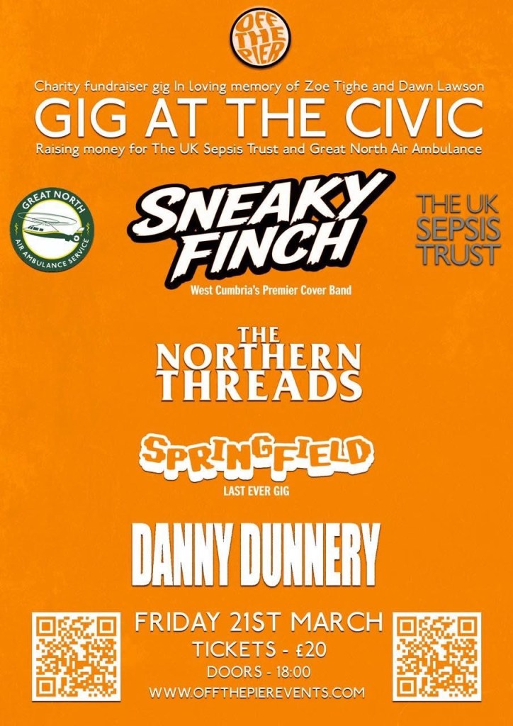 The line up for the evening includes for local bands – Sneaky Finch, The Northern Threads, Springfield and Danny Dunnery.