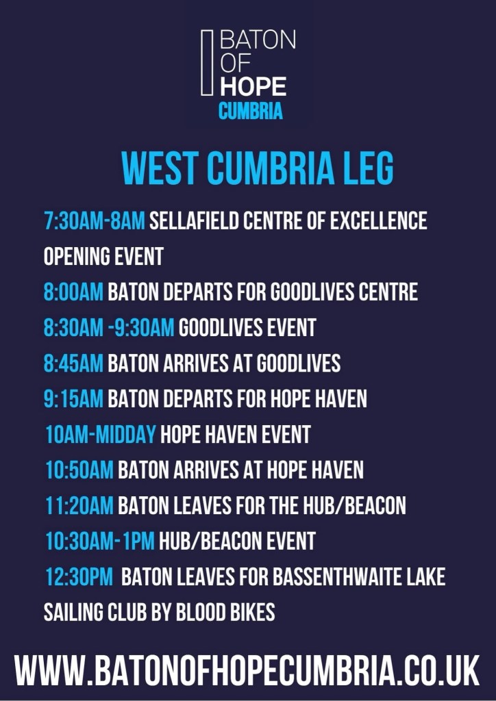 Now back for its second outing the Baton of Hope is coming to Cumbria with Cleator Moor, Whitehaven, Penrith and Carlisle hosting the Baton.