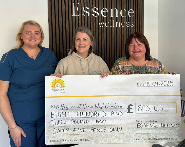 Essence Wellness has raised £803.65 for Hospice at Home West Cumbria through a special fundraising event.