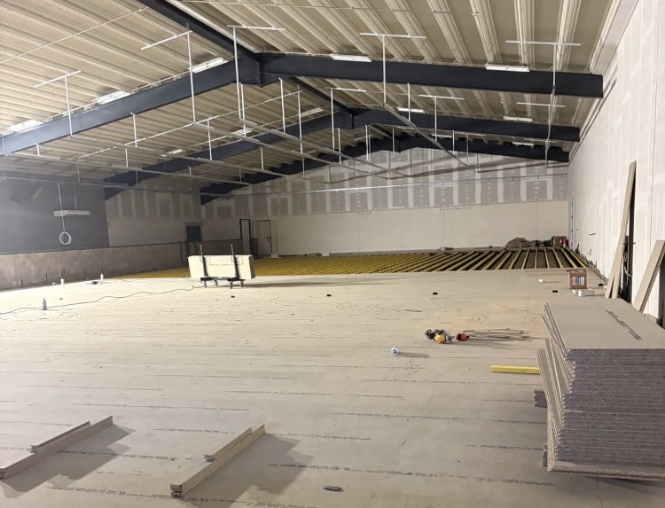 The former indoor bowls hall is also advancing well, with subfloor construction underway.