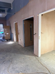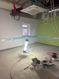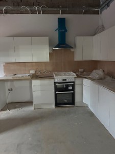 The kitchen is now being installed, room finishes are progressing with fresh colours and ongoing mechanical and electrical work and plastering and partitioning are moving steadily across several areas.