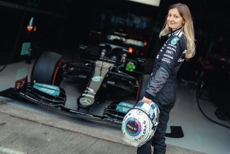 “It marks another major step on what is proving to be a very exciting and promising career and also makes her the first ever female driver of a Mercedes F1 car.